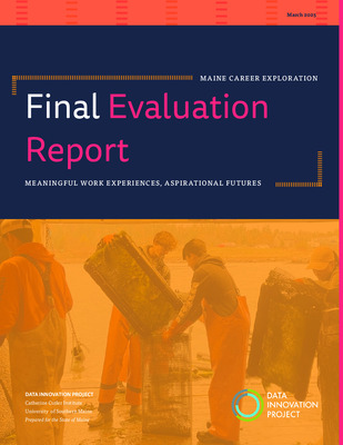 The Maine Career Exploration (MCE) Program was a two-year, $25 million pilot initiative launched in 2022 by Governor Janet Mills as part of the Maine Jobs and Recovery Plan. The program aimed to connect young people aged 16 to 24 with Maine’s economy through paid, age-appropriate career experiences that matched their interests, while also expanding career exploration opportunities in schools and communities and building long-term infrastructure to sustain these efforts. Managed by the Maine Department of Economic and Community Development, MCE distributed funding across three main streams: the Maine Children’s Cabinet Career Exploration Pilot Project, the Maine Department of Education’s Extended Learning Opportunity Expansion Program, and the Jobs for Maine Graduates Career Exploration Expansion. Together, these efforts successfully exceeded participation goals, offering meaningful paid work experiences to youth across the state. The Children’s Cabinet initiative engaged disconnected and underrepresented young people, the Department of Education expanded hands-on learning programs and opportunities to earn school credit, and Jobs for Maine Graduates supported students with career readiness training and statewide coordination. The Data Innovation Project at the University of Southern Maine’s Catherine Cutler Institute conducted a mixed-methods evaluation to assess the program’s effectiveness, drawing on surveys, interviews, employer feedback, and focus groups. Findings highlighted that the program provided valuable real-world learning experiences, strengthened youth career readiness, and fostered partnerships between schools, employers, and communities. This final evaluation report expands on earlier findings to offer insights and recommendations for sustaining and growing Maine’s career exploration infrastructure in the years ahead.