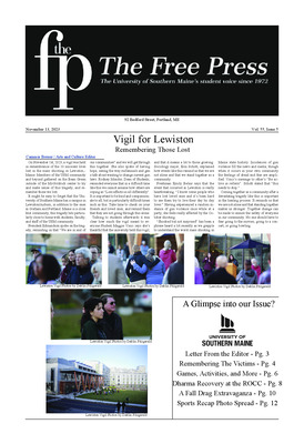 Spotlight on USM Neighbors--USM Goes Into Panic--Lewiston Shooting One Year Remembrance--The Gorham Connector--Champlain Film Festival--Portland String Quartet--Visiting Hometowns--EIC's Halloween Letter