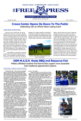 Crewe Center Opens Its Doors To The Public--USM M.A.S.H. Hosts BBQ and Resource Fair--Osher School of Music Begins iPad Pilot Testing--Campus Events Dwindle in Students Attending--The Deaf Culture Festival--Maine Senate Race Heats Up--DOJ's Voter Data Grab Meets Resistance from Maine--The Legality and Possibility of a Third Presidential Term--You Should Still Get Vaccinated This Year