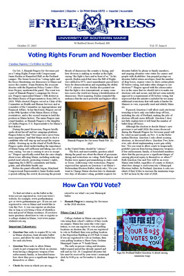 Huskies Walk to the Polls--Angus King Opinion Piece--Letter from the Editors--Student Opinion Piece--Odie Leigh Concert--Movie Talk--Mens Golf Brings Home LE Championship--OAB Trip