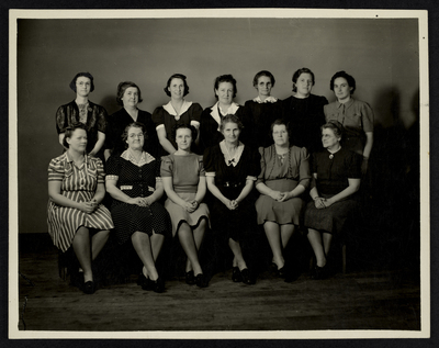 Handwritten on verso: Members: Viola Spinney, Marion Hamilton, Ruth Vickery, Viola Redmond, Mildred Dean, Beryl Dean, Molly Canders, Ruby Brett, Sarah Pritham