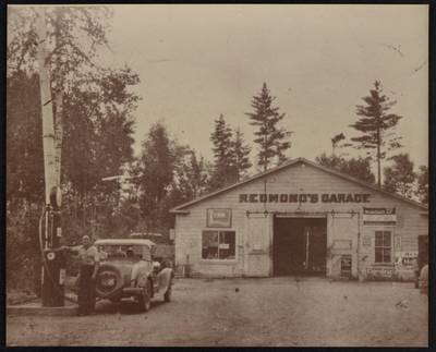 A man fills his automobile fuel at the Redmond's Garage lot.