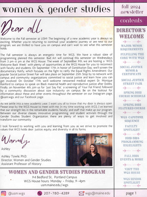 The WGS Newsletter is a newsletter from the University of Southern Maine's Women & Gender Studies Program.